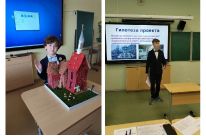 Ученик 1 класса "А" защитил свою работу в номинациях "Макет" и "Видеоролик", а ученик 8 класса "Б" выступил с презентацией проекта "Александр и Натали: у Никитских ворот".